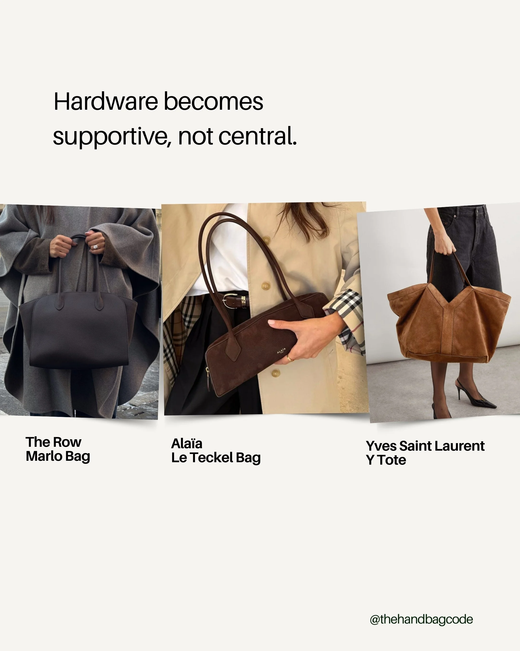 You see this across brands like The Row, Alaïa, and Saint Laurent.