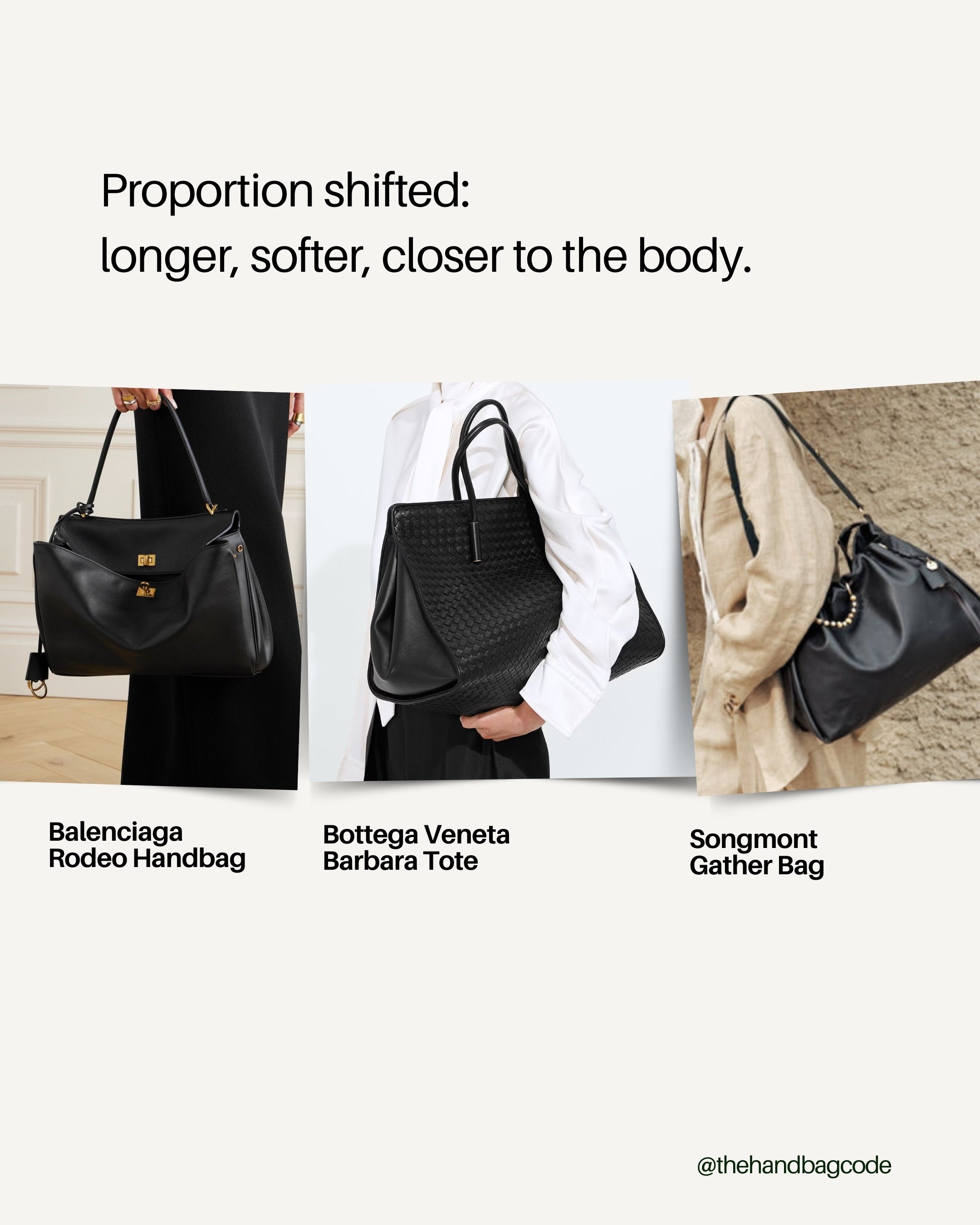 The Balenciaga Rodeo, the Bottega Veneta Barbara, and even newer shapes from smaller brands like Songmont all follow this logic.